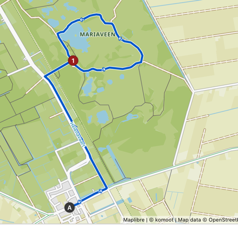 7.88 kmEen kortere route door het Mariaveen, perfect voor een snelle wandeling of een ontspannen middag in de natuur. Met verharde paden geschikt voor elk niveau. Reken op ongeveer 1,5 uur wandelen.